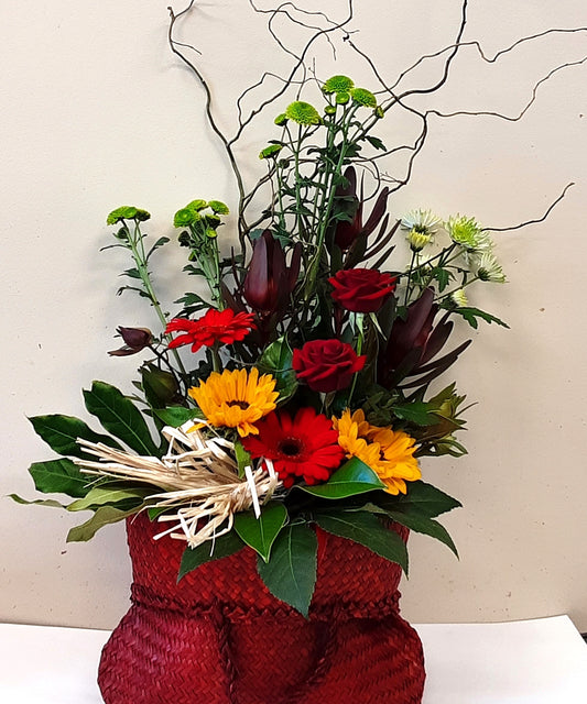 Fresh Flowers in Kete Bag - Soft Pinks and Purples