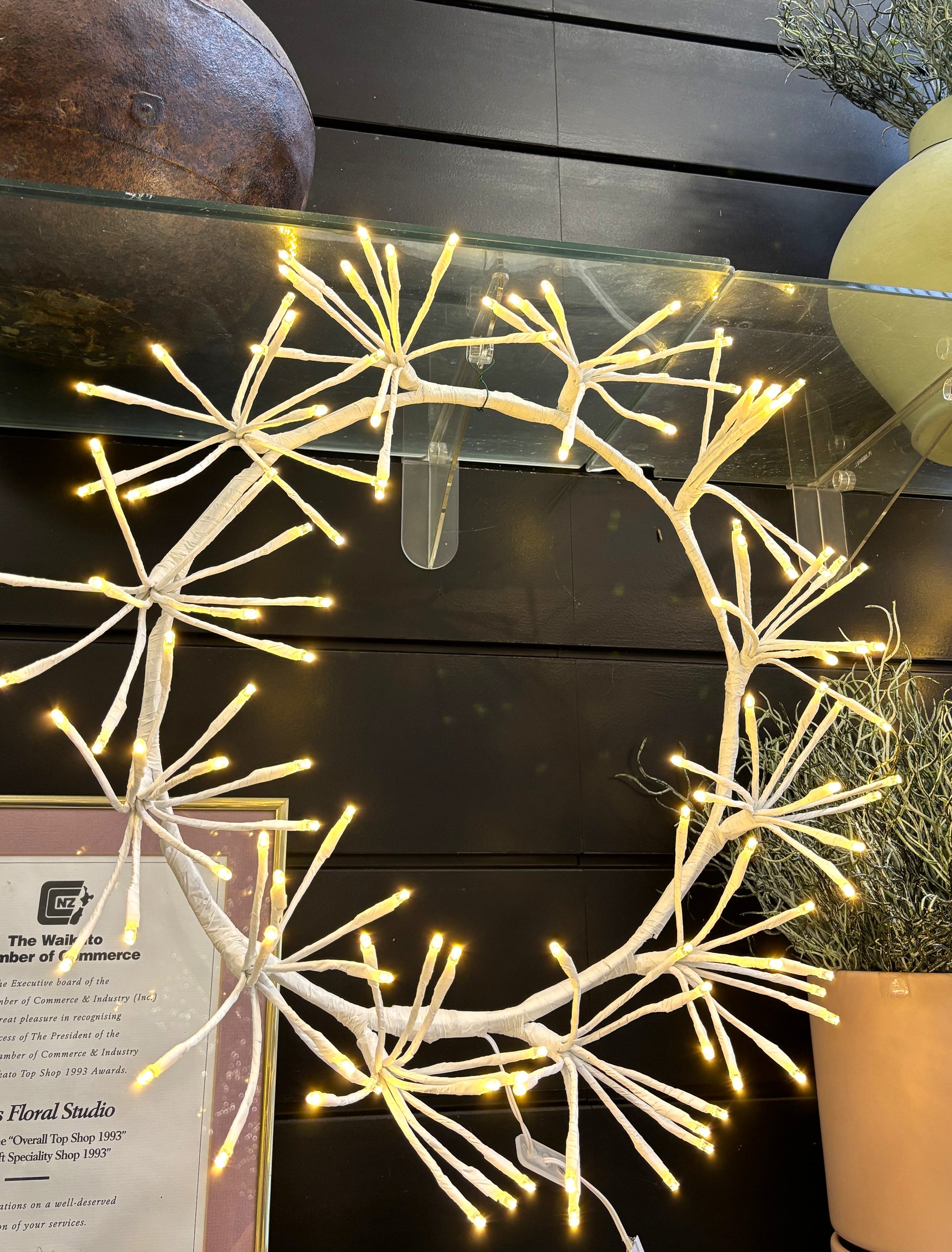 Beautiful light wreath, with either black or white frame. Stunning modern Christmas decor.