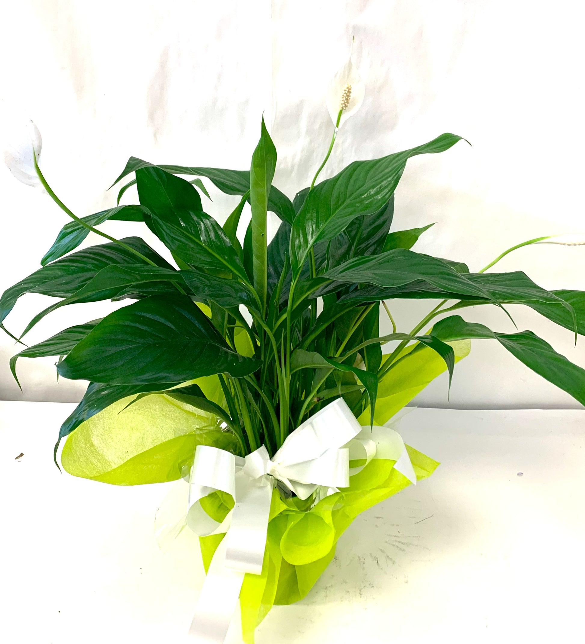 Peace Lilies are a beautiful plant with dark green foliage and white flowers make are a great choice for both the home or office!